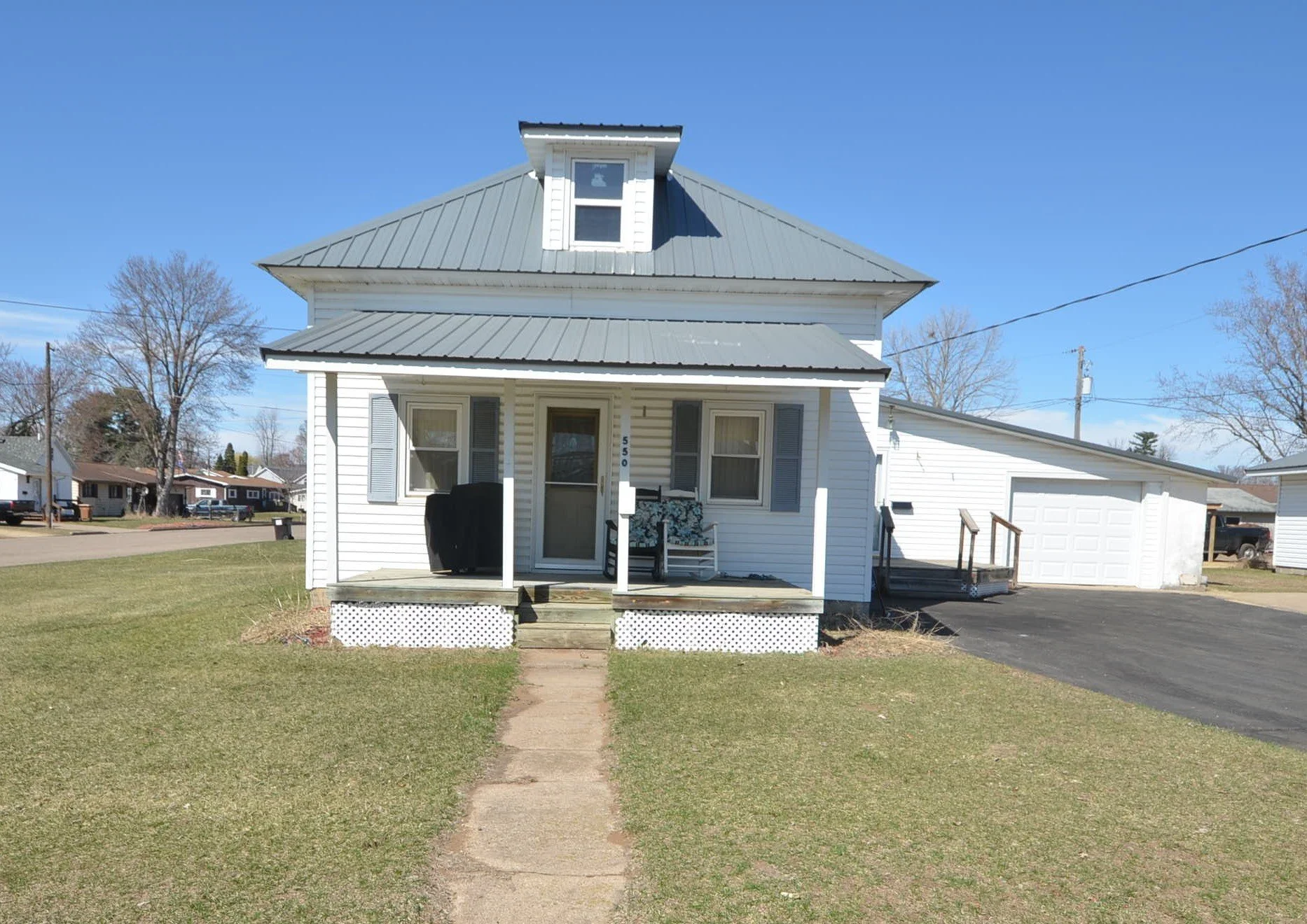 Enjoy the perfect blend of comfort and functionality in this updated 1.5-story, 2-bedroom home designed for convenient main-level living. The open kitchen and dining area features beautiful hardwood cabinetry in a horseshoe layout, making it both inviting and practical. A generously sized living room offers plenty of space for relaxing, entertaining, or spending time with family. Upstairs, two versatile open rooms provide great options for guests, hobbies, or additional living space. The standout feature is the 28x40 heated detached garage (1,120 sq ft)—a dream space for anyone who enjoys working on projects, needs extra storage, or wants a dedicated shop or workout area. Quiet, comfortable, and full of potential—this property checks all the boxes.